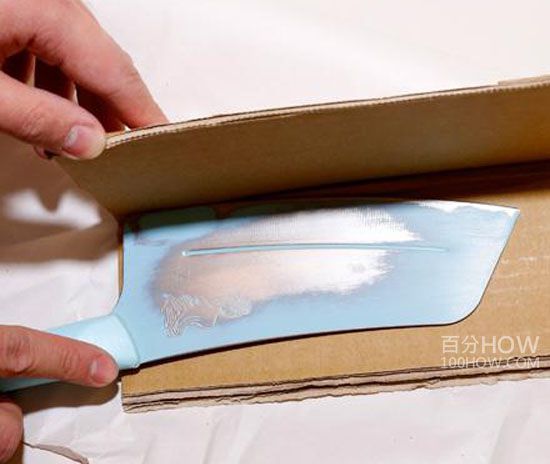 c、最后用氣泡布包好菜刀的瓦楞紙再次包裹即可。